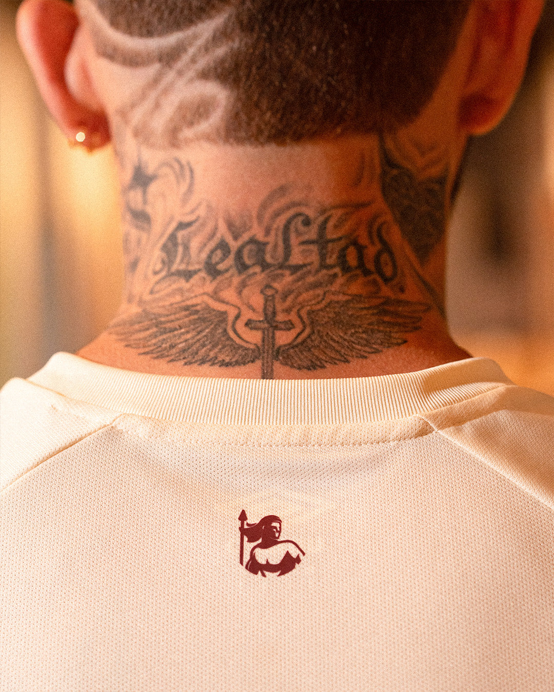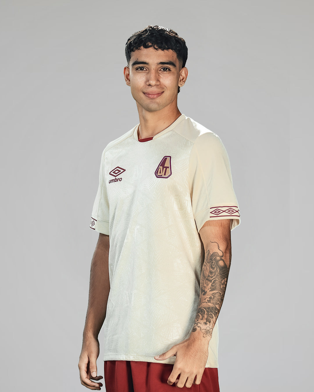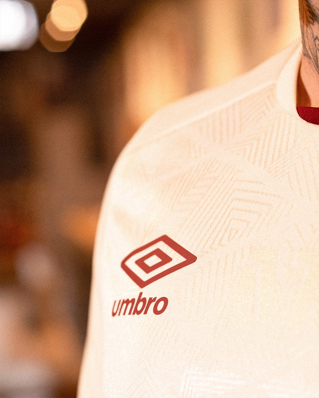 Camiseta de competencia Visitante del Deportes Tolima 2026 Color Crema o Bruma, Prenda original de la marca Umbro, Tela Tejida con patron 100% exclusivo, Logo en Transfer dorado , escudo Coversealing termo fijado, Puños con detalles en contraste y ribete.
